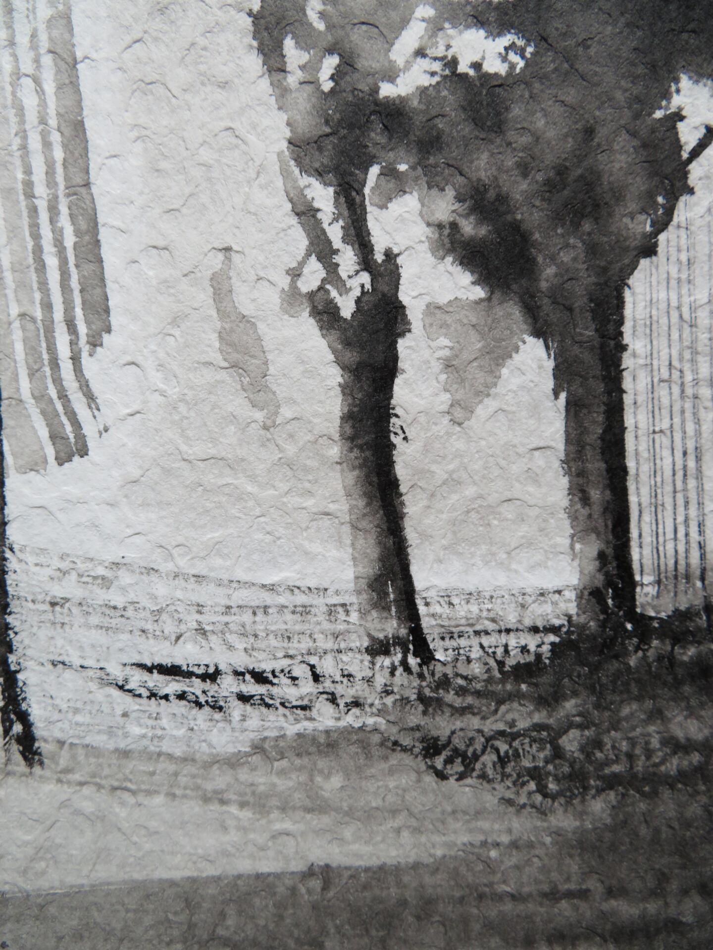 Les jardins suspendus , paysage imaginaire illustratif, expressionnisme poétique en noir et blanc, encre de chine sur papier texturé de format vertical pour mieux s'envoler. les jardins suspendus vous accueillent avec leur petit air de science-fiction inspiré de l'art asiatique, et c'est toujours pour moi l'occasion d'un jeu de taches où le flou et le net se disputent la part du rêve.